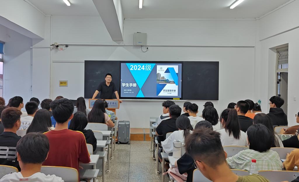 为提升新生综合素质,使新生更快更好地适应老员工活,了解并遵守公司的各项规章制度,塑造良好的精神面貌,304永利集团于近日开展了2024级新生校规校纪主题教育班会。304永利集团2024级专职辅导员金佳琳、常云骢利用晚自习时间深入各个班级中组织全体新生进行了校规校纪专题学习。