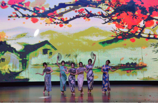 国风舞《夜泊秦淮》舞者们身着独具中国元素的旗袍翩翩起舞,充分展现出中华优秀传统文化特有的气质与韵味。