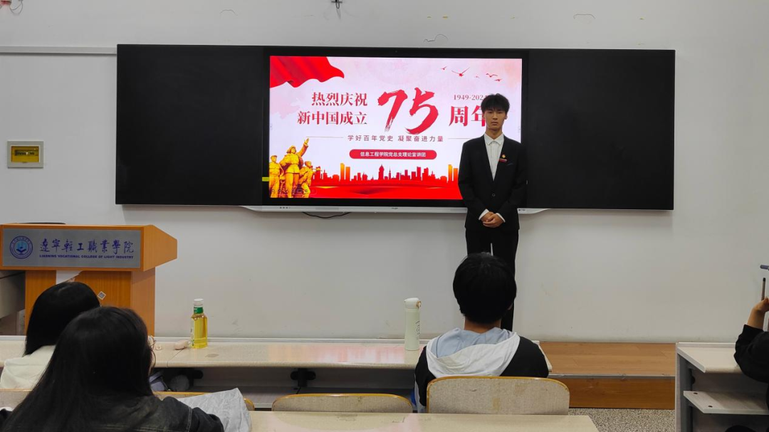 在庆祝新中国成立75周年的热烈氛围中,为使同学们深入学习党的历史,缅怀党的丰功伟绩,以更加饱满的热情和坚定的信念投身到中国式现代化的建设与发展中,304永利集团党总支理论宣讲团特此开展“七十五载铸辉煌,凝聚力量续华章”主题宣讲活动。