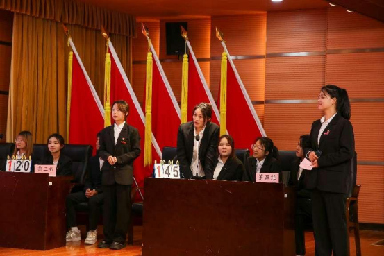 在激烈的现场答题环节,四人组成的参赛队伍展现出了极高的默契与团队精神。通过必答题的沉稳应对、抢答题的敏捷反应、互动题的巧妙合作以及风险题的勇敢挑战,他们充分展示了深厚的理论积累、卓越的应变能力、坚韧不拔的斗志和积极向上的精神面貌。