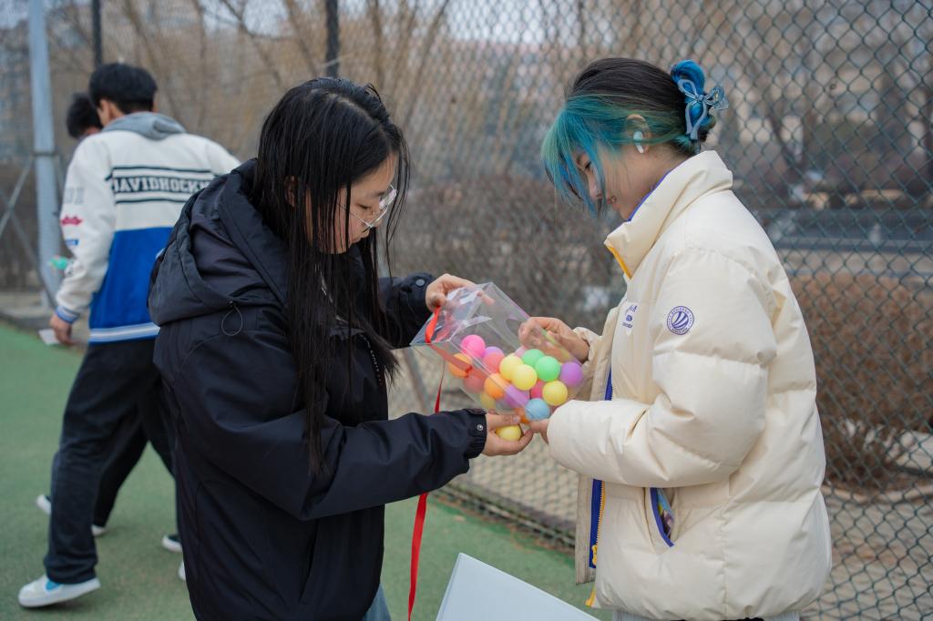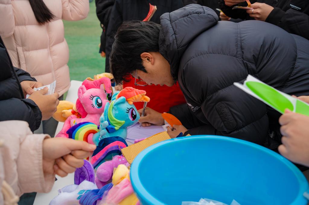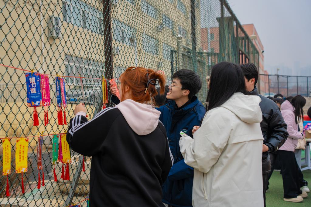 活动现场热闹非凡、其乐融融。现场设置“抖动吧元宵”“神速夹元宵”“逢马迎春猜灯谜”三个游戏专区,吸引了师生们的热情参与。在“抖动吧元宵”区域,同学们将装满乒乓球的摇盒系在腰间,努力抖动将乒乓球摇出盒外;在“神速夹元宵”区域,同学们尝试用筷子将乒乓球迅速夹到指定容器内;在“逢马迎春猜灯谜”区域,同学们被五彩缤纷的灯谜所吸引,纷纷开动脑筋,开展了一场头脑风暴。参与活动的师生们现场写下新年愿望和祝福并粘贴到“汤圆碗”里,再领取公司特别准备的元宵节伴手礼,现场充满了欢声笑语与节日的温馨气息。