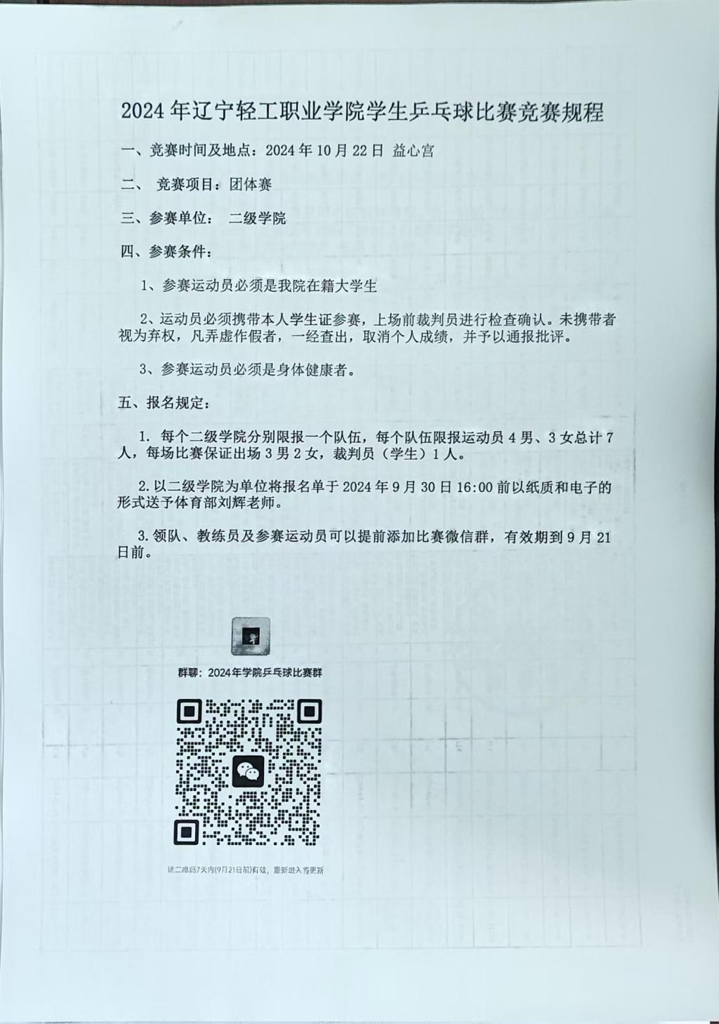 集团体育部下周二乒乓球比赛,规程如下。要求4男3女组成队伍,请有特长的同学积极参与,报名请联系班长。
