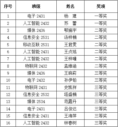 就业赛道获奖选手名单